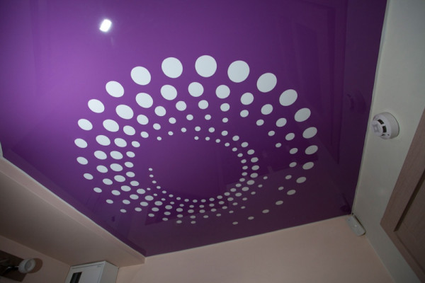 Перфорированные резные натяжные потолки имеют нестандартный внешний вид, но при этом они сохраняют все преимущества классических моделей. Их конструкция состоит из двух пленок – одна имеет резные отверстия, создающие дизайн потолка, вторая является цельной. Дополнительно в резные потолки могут монтироваться светодиодные ленты, с помощью которых удается подчеркнуть резные элементы, выполненные по технологии Apply.